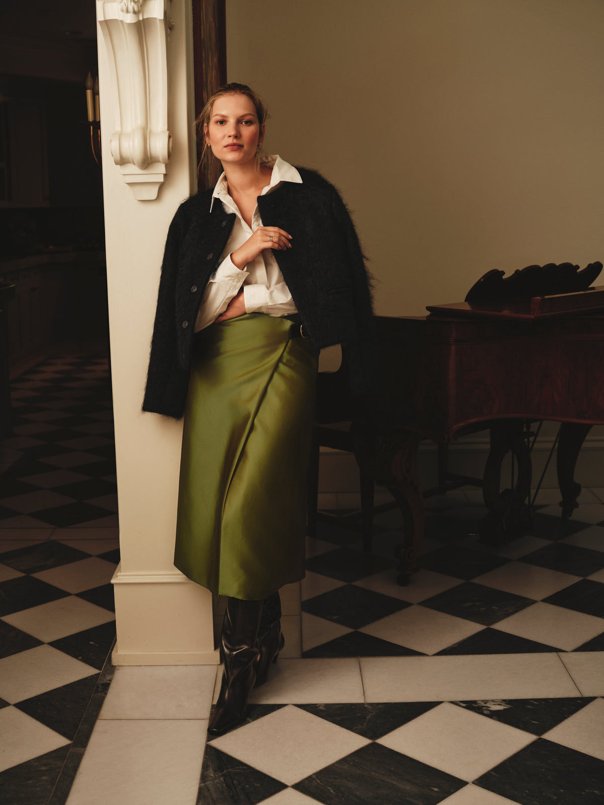The model is 176cm/5'9 tall and wears a size 36